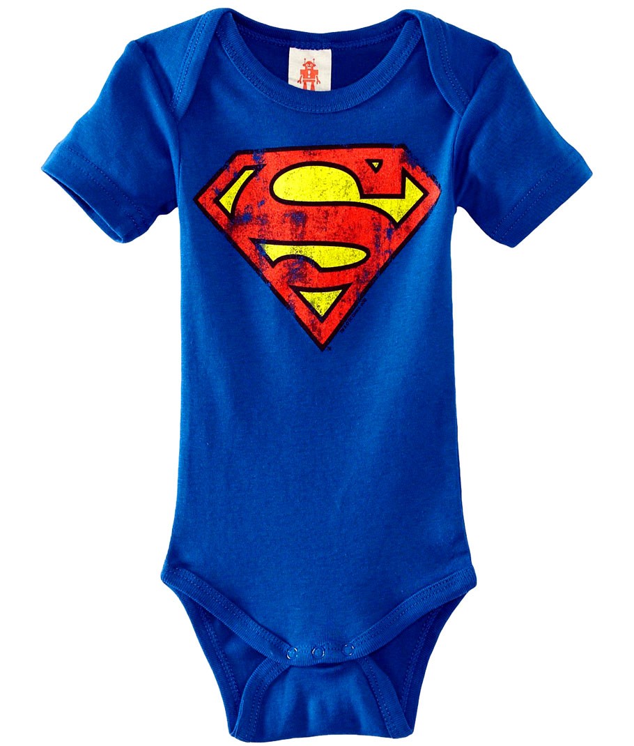 Superman Logo body bimbo ufficiale Dc Comics by Logoshirt. Girocollo 100% cotone stampa effetto vintage, esente da metalli pesanti