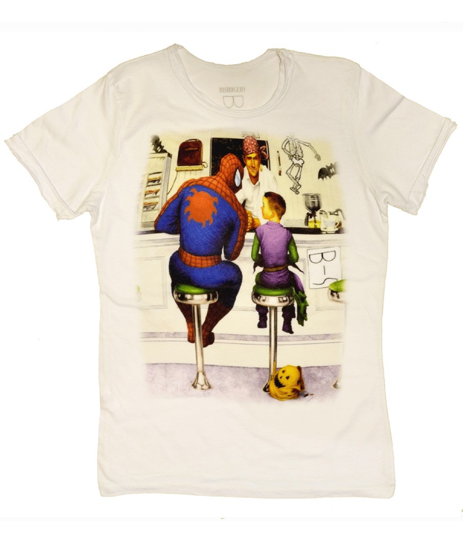 T-shirt Spiderman bambino by Bisibiglio. Maglietta vintage girocollo in cotone colore bianco. Made in italy