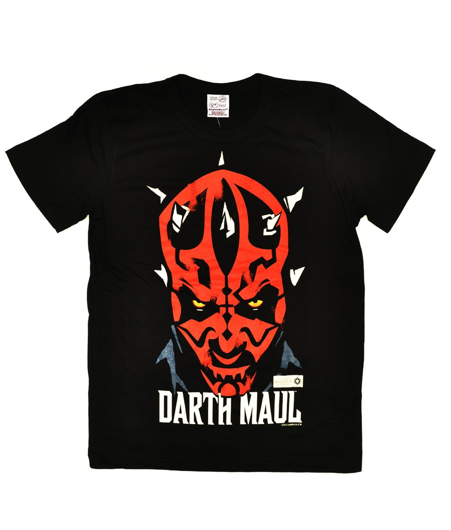 T-shirt Darth Maul ufficiale Star Wars by Logoshirt. Maglietta uomo girocollo, in cotone, colore nero, stampa effetto vintage. Vestibilità Regular