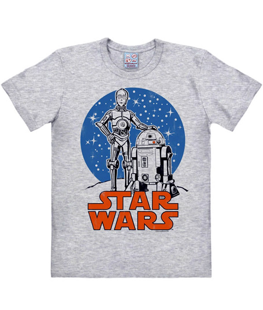 T-shirt Droidi ufficiale del film Star Wars. Maglietta girocollo stampa vintage 100% cotone by Logoshirt. Vestibilità Regular