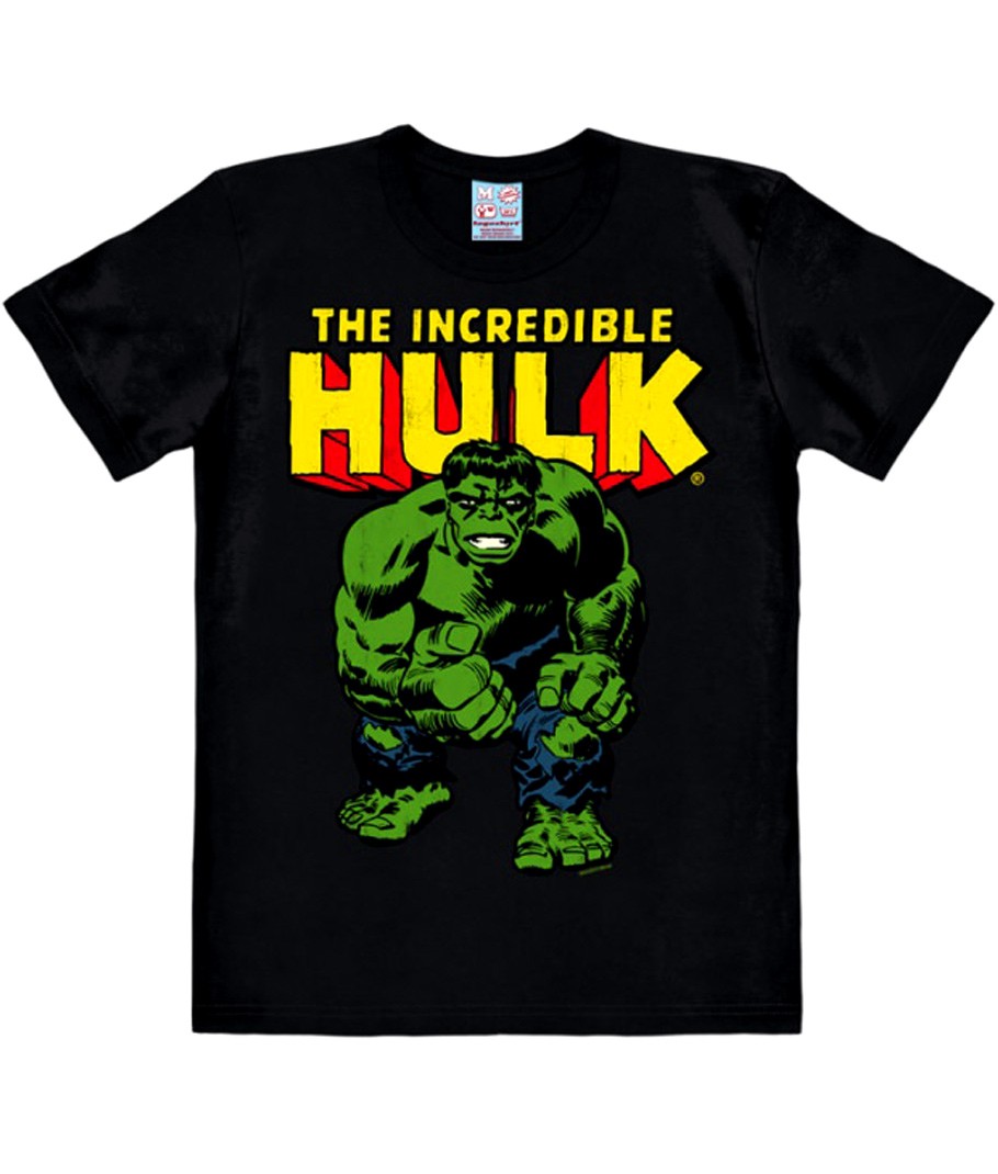 T-shirt Incredibile Hulk ufficiale del supereroe Marvel. Maglietta girocollo 100% cotone con stampa effetto vintage by Logoshirt. Vestibilità Regular
