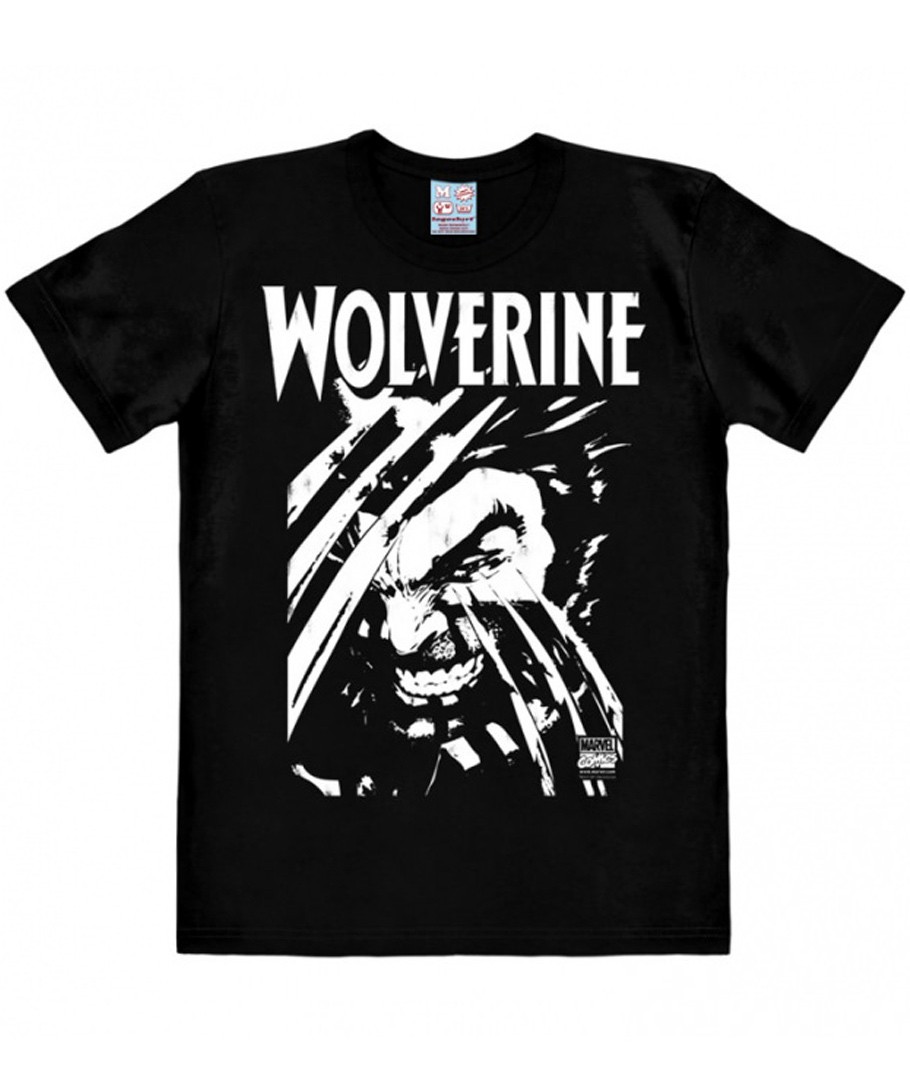 T-shirt Wolverine Face ufficiale Marvel. Maglietta con stampa vintage girocollo 100% cotone by Logoshirt. Vestibilità Regular